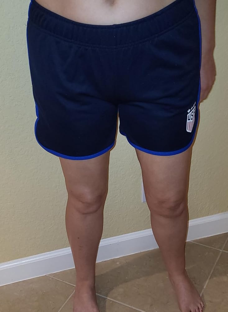 I'm typically a size 8, so I ordered a medium in the Icon Sports U.S. Soccer Shorts. Unfortunately, the size chart was no help. It doesn’t include waist measurements, which made it hard to choose the right size. I have a 28" upper waist, 30" lower waist and 37 inch hips, and while the medium fits, it feels slightly on the small side. These are pretty low rise and body hugging. I like the navy color and USA patch, but the fit isn't the most flattering on me. I maybe should have sized up for a looser fit.