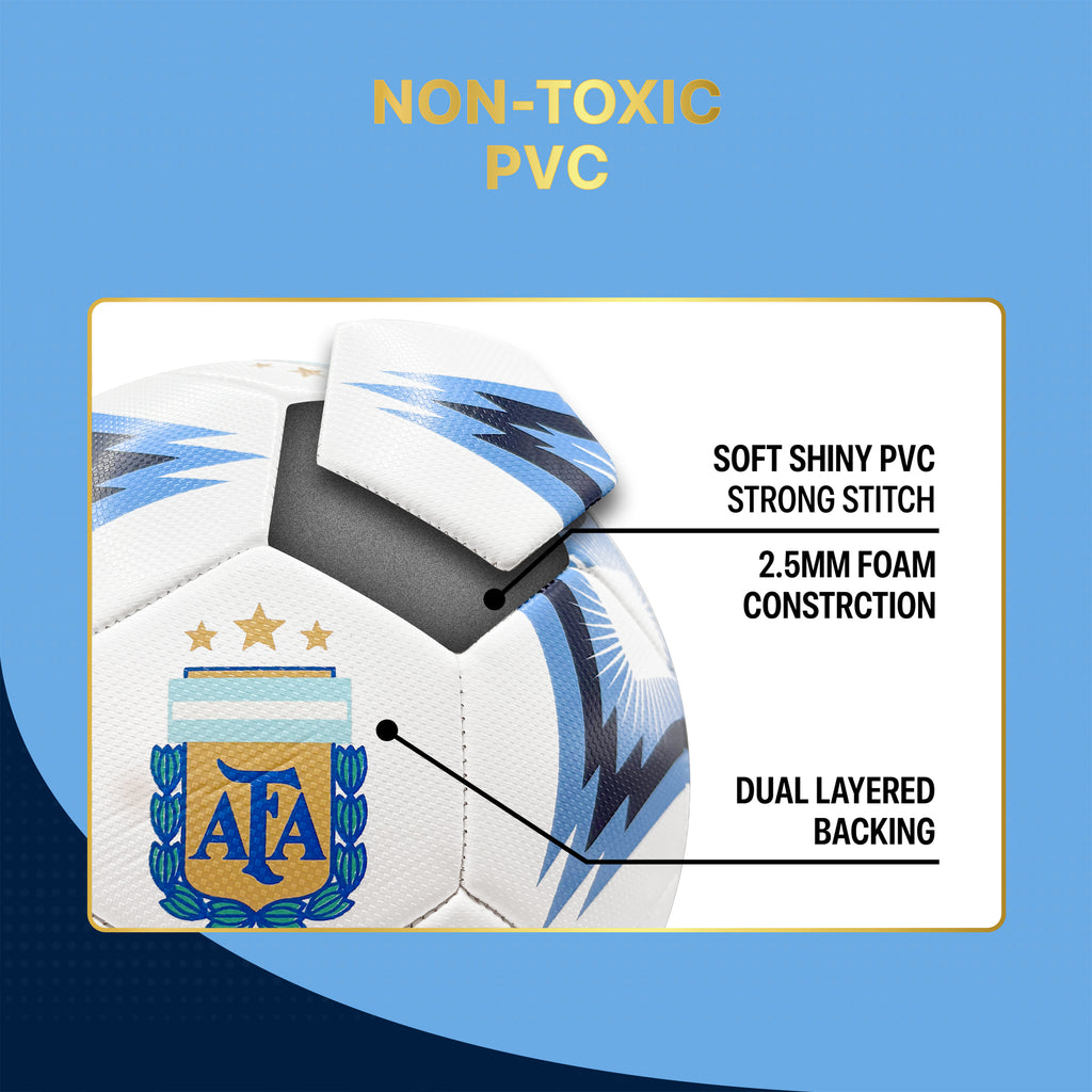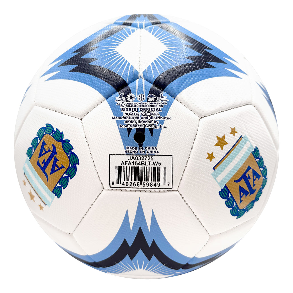 Show your love for the game with this officially licensed Argentine Football Association Size 5 soccer ball. It’s the same size used by the pros, making it perfect for serious games, practice sessions, or even casual weekend matches. Whether you're sharpening your skills or just having fun, this high-quality ball is ready for any challenge.